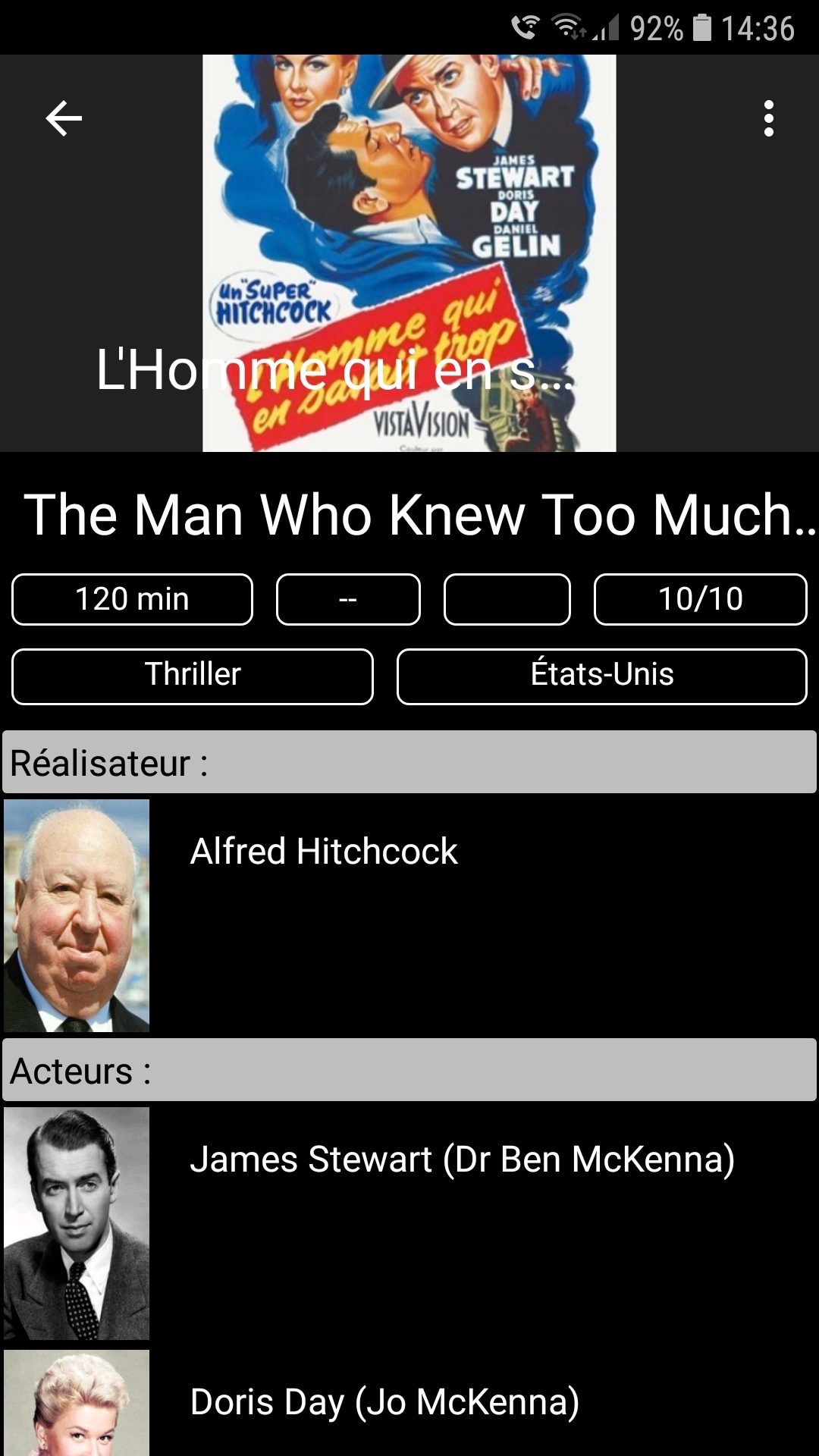 3. Avec Filmotech Android 1.115 (avec Guest Film c'est sensiblement pareil), ex de James Stewart dans L'homme qui en savait trop de Hitchcock.