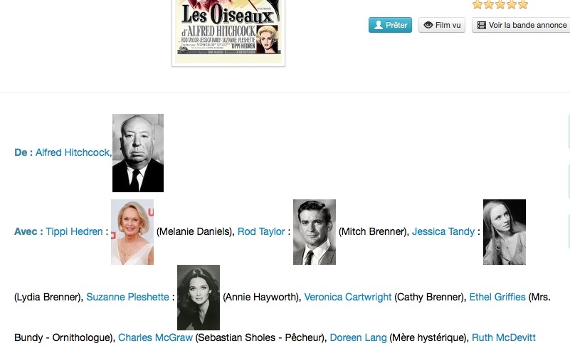 Elle pourrait ainsi donner les films possédés et sa participation à ce titre (réalisateur, scénariste, acteur ou autre) lorsque tu cliques sur un nom sur la fiche du film.