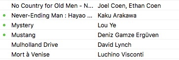 Cette colonne existe, celle qui est la plus à gauche : aucune indication (ni point vert ou jaune, films non vus ou sortis) : film vu.