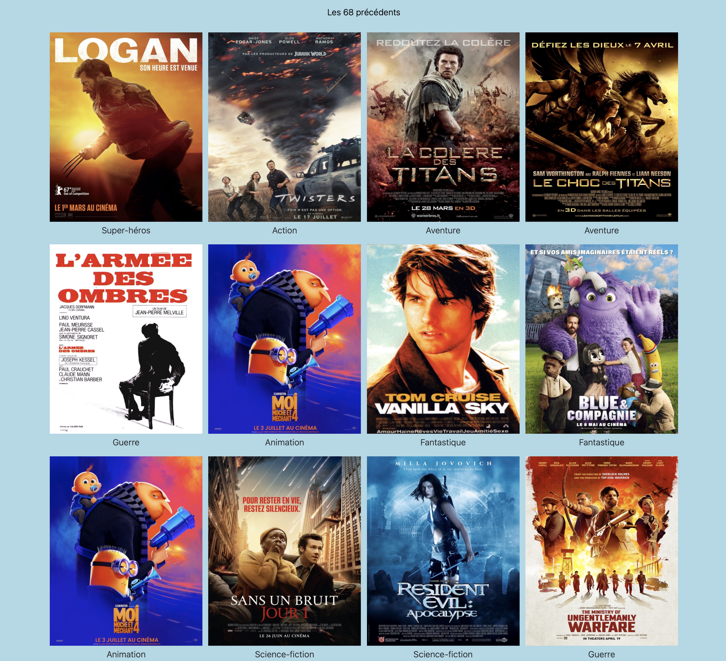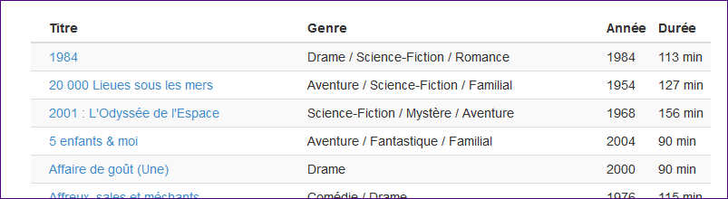 C'est à dire 4 colonnes avec Titre, Genre, Année, Durée comme image jointe